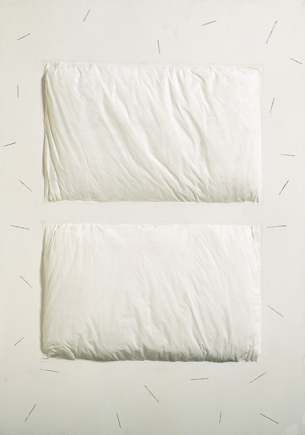 Lore Bert Rectangle with 2, 1986 acrylic and paper on canvas with cotton 100 x 70 cm cat.-n° 86010