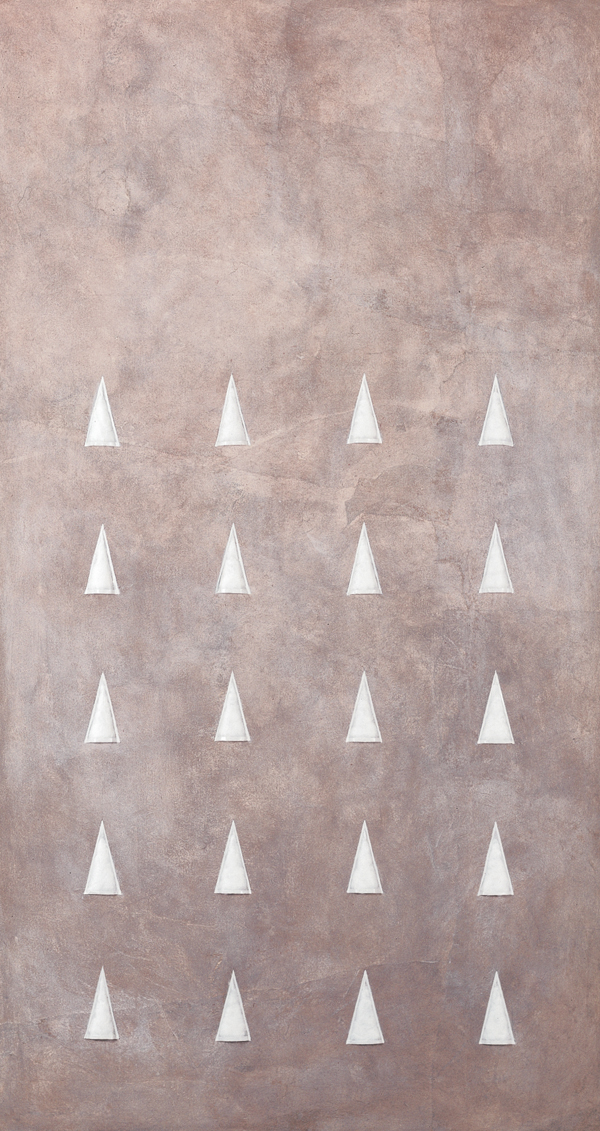 Lore Bert Geordnete Reihen II, 1984 Aquatec und Papier mit Baumwolle auf Leinwand 130 x 70 cm WVZ-Nr. 84018