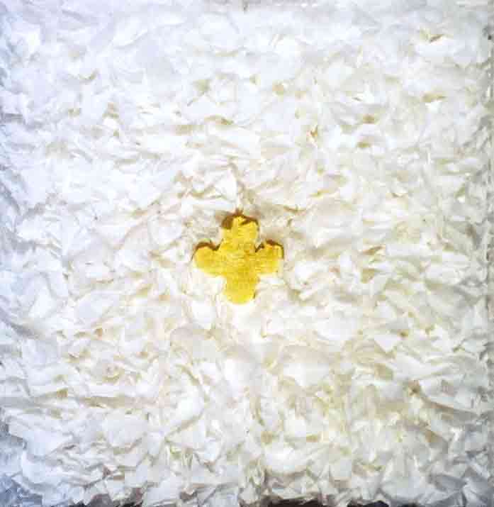 Lore Bert Weißes Feld mit Vierpass, 2001 Multiple-Objekt mit Japanpapier 30 x 30 cm WVZ-Nr. 01100