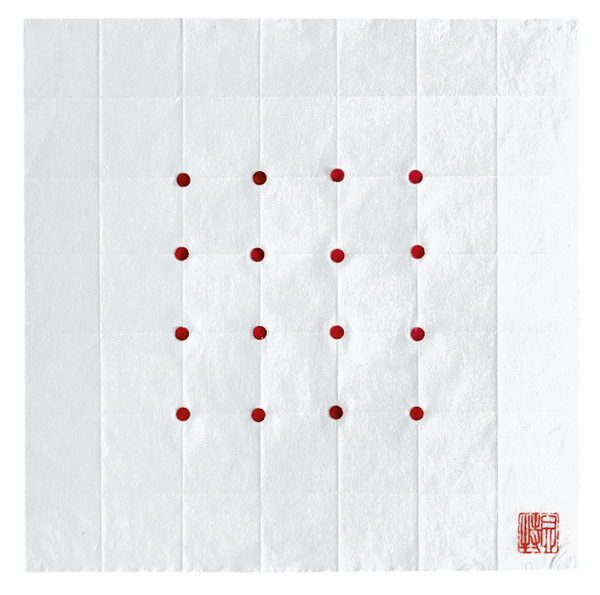 Lore Bert Falt - Feld - Punkte rot 8, 2002 Rote Punkte auf Japanpapier 30 x 30 cm WVZ-Nr. 02070