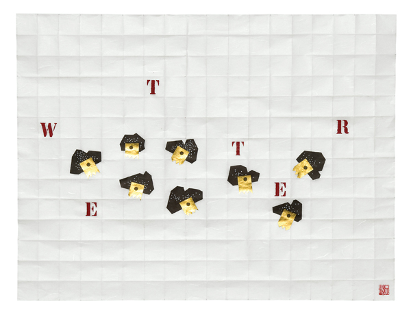 Lore BertWetter, 2008Falt-Feld-Collage mit Schrift und Blattgold auf Japanpapier50 x 60 cmWVZ-Nr. 08057