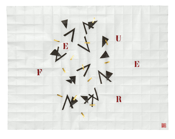 Lore BertFeuer, 2008Falt-Feld-Collage mit Schrift und Blattgold auf Japanpapier50 x 60 cmWVZ-Nr. 08052