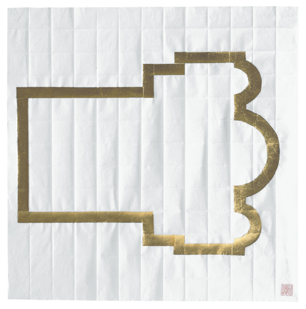 Lore Bert Folded Fields - Shape 12, 2002 Japanese paper with gold leaf 45 x 45 cm cat.-n° 02042