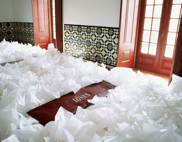 Lore Bert 5 Kontinente - 5 Elemente, 1995 Environment: Papierraum mit 5 Objekten Sintra/P · Palacio Nacional - Sala das Galés 930 x 210 cm WVZ-Nr. 95038