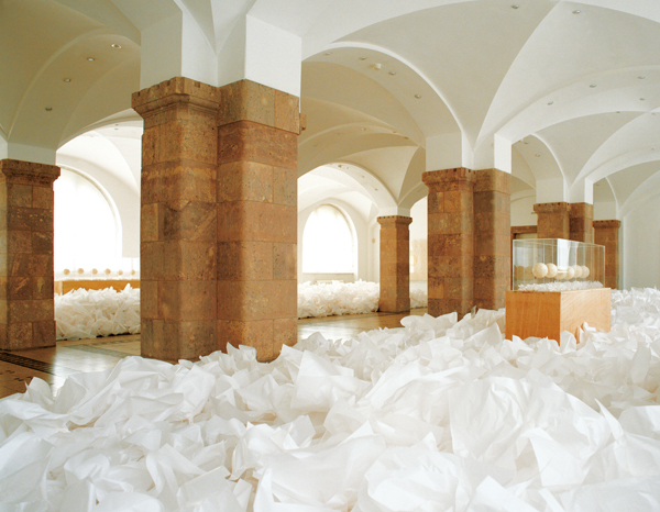 Lore Bert Without Beginning Without End - Borderless, 1998 environment with paper in Chemnitz · Städtische Kunstsammlungen 2500 x 1500 cm cat.-n° 98047