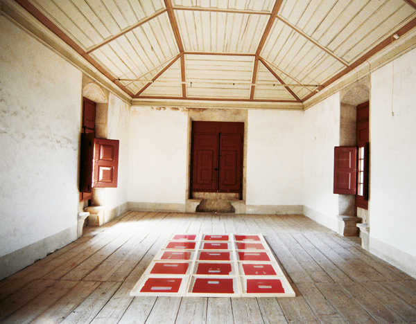 Lore Bert Europa - Identität in der Differenz, 1995 Collagen mit Japan- auf rotem Nepalpapier als Environment Sintra/P · Palacio Nacional - Sala do Bonet (15-teilig) je 95 x 65 cm WVZ-Nr. 95041
