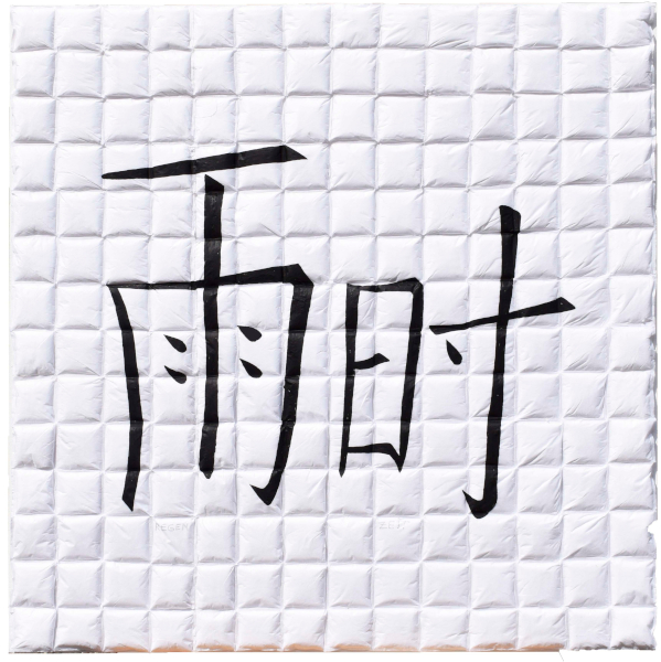 Lore Bert Regen Zeit (chinesisch), 2021 Transparent mit Japanpapier 80 x 80 cm WVZ-Nr. 21206