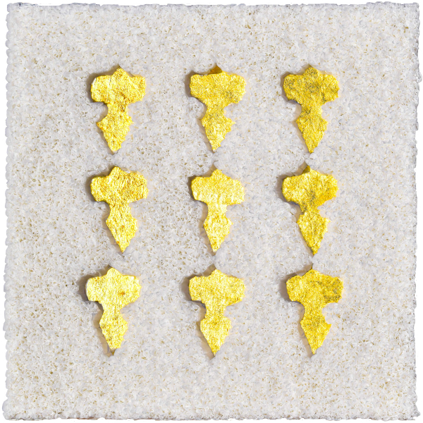 Lore Bert 9 goldene Lilien, 2022 Bildobjekt mit Japanpapier und Blattgold 50 x 50 cm WVZ-Nr. 22002