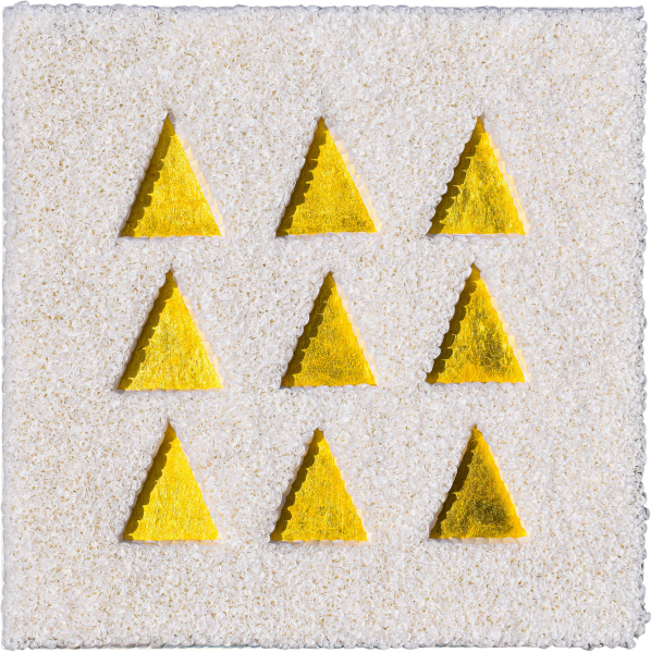 Lore Bert 9 triangoli d'oro, 2022 Quadro-oggetto con carta giapponese e foglia d'oro 50 x 50 cm cat.-n° 22003
