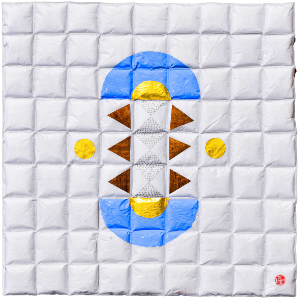 Komposition mit Papyrus, Blattgold und Farbe, 2022