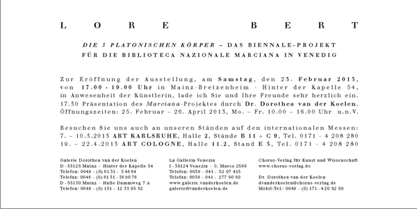 55. BIENNALE DI VENEZIA 2013»Art & Knowledge - In the 5 Platonic Solids«28.Mai - 24. November 2013 Lore Bert und die 5 Platonischen Körper |