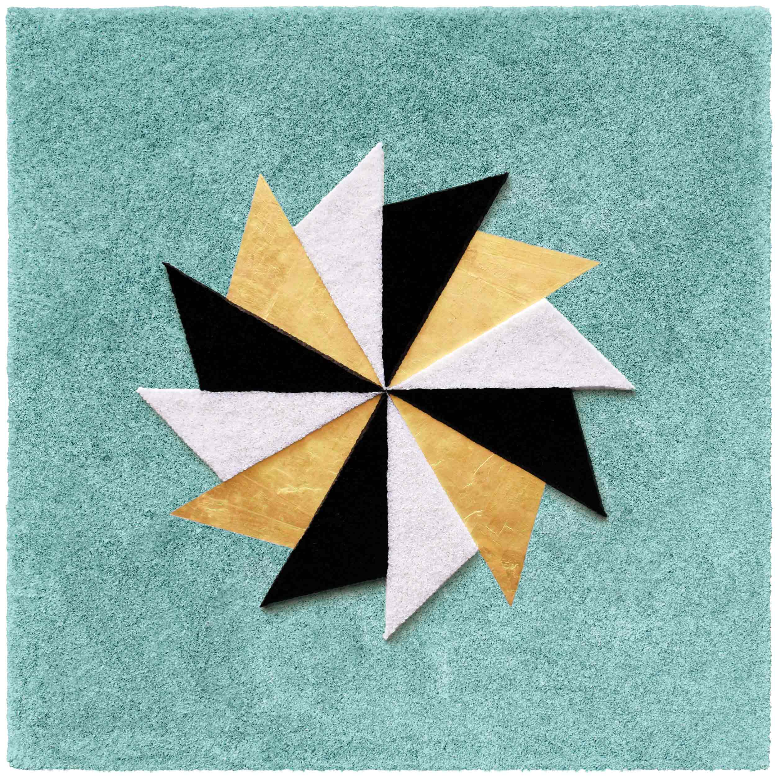 Lore Bert Star in Turquoise, 2018 Relief-object with Japanese paper and gold leaf 180 x 180 cm cat.-n° 18091